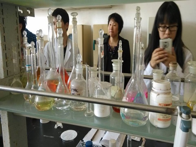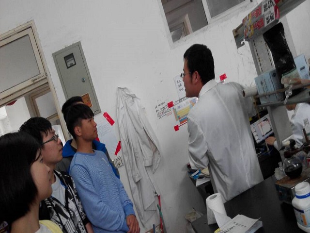 本次参观将全班分成四组不同路线参观,分别由晏利琴,张明翠,陆哓晶,阚显文四位老师带队进行参观。此次参观的实验室主要位于生化楼,科技南楼和北楼,涉及无机,有机,物化,材料,分析,高分子纳米材料等研究方向。在参观过程中时,各个实验室都安排了老师或研究生为同学进行讲解。老师们耐心细致地对实验室的研究方向,研究成果及各种仪器原理和用途进行了详细的介绍,并鼓励同学们提出问题,答疑解惑。对于大一的同学们来说,实验室里充满了未知和神秘,导师的学生在实验室里严谨细致地做实验的过程令人十分敬佩。同学们很快对实验室产生兴趣,对学长学姐和导师提出各种疑问,并急不可耐地想动手一做。