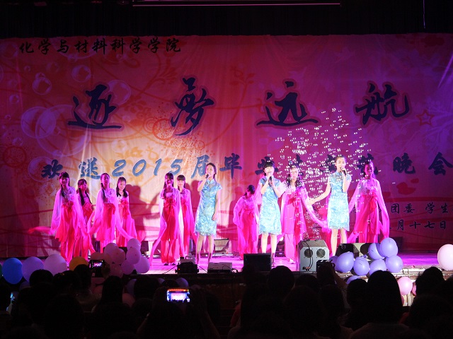 晚会在奔放热烈的开场舞拉开帷幕。歌伴舞《同桌的你》,婉转动听的歌声伴着简单优美的舞蹈,透露出初识的羞涩,相处的和睦,离别的感伤,一点一滴都牵动着观众回忆的思绪。由学院三位女教师带来的《惊鸿舞》,轻盈飘逸,柔中带刚,极具韵味。小品《梦想》和歌舞剧《我们的故事》讲述了从懵懂到成熟并实现理想的大学四年。“从不觉得你讨厌,你的一切都喜欢”。在辅导员和老师的眼中,不论同学们怎么调皮任性,都是他们怎么爱都爱不够的小苹果。辅导员老师和同学们合作的舞蹈《小苹果》气氛活跃,high翻全场,出现了全场大合唱的高潮。晚会中间,学院最受本科生喜爱的10名青年教师闪耀登场,连续四年被评为最受学生喜爱的博士生导师张武教授代表获奖教师表达了对毕业生的深情祝福和殷切期望。在全员育人的氛围下,学院的领导、系(中心)主任、教师代表的流行合唱《红旗飘飘》为毕业班学子送上了最真诚的祝福。