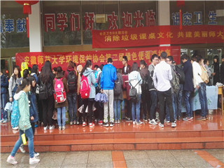 4月6日至8日,环境保护协会于食堂门口进行为期三天的展台宣传及现场报名工作。“绿色使者”选拔赛初赛由此拉开帷幕。初赛内容分为:环保知识竞赛和环保PPT讲演大赛。知识竞赛期间,同学们严格遵守考试秩序,认真答题,把美丽的文字编织为一首首绿色的主旋律,用慷慨的青春书写下对环境保护的热爱之情。