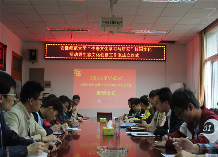 为提高在校大学生生态文明意识,树立生态文明理念,顺利实施2016年学校校园文化研究专项课题。5月15日,安徽师范大学环境保护协会在院大会议室举行了“生态文化学习与研究”校园文化活动项目启动暨生态文化创新工作室成立仪式,美高梅4858线路登录党委副书记余妍霞,院关工委副主任、项目主持人、环境保护协会指导老师宫世国及协会各部门骨干与工作室成员参加了此次仪式,仪式由协会指导老师袁青兵主持。