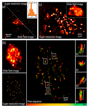 超分辨率成像技术,如单分子定位显微镜,克服了衍射分辨率的限制,在过去二十年中已成为以纳米级分辨率可视化细胞结构的独特工具。虽然光活化/转换荧光蛋白极大地促进了SMLM技术的发展,但由于其尺寸大,不希望的过表达或寡聚/聚集以及掺入受限,因而其应用仍然受到限制。光转换有机荧光团,它可以从一种荧光发射波长转化为另一种发射波长,从而使活化前和活化后形式的可视化,因此在活细胞成像的高时间和空间分辨率方面具有潜在的优势。