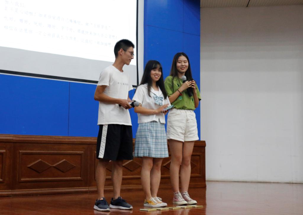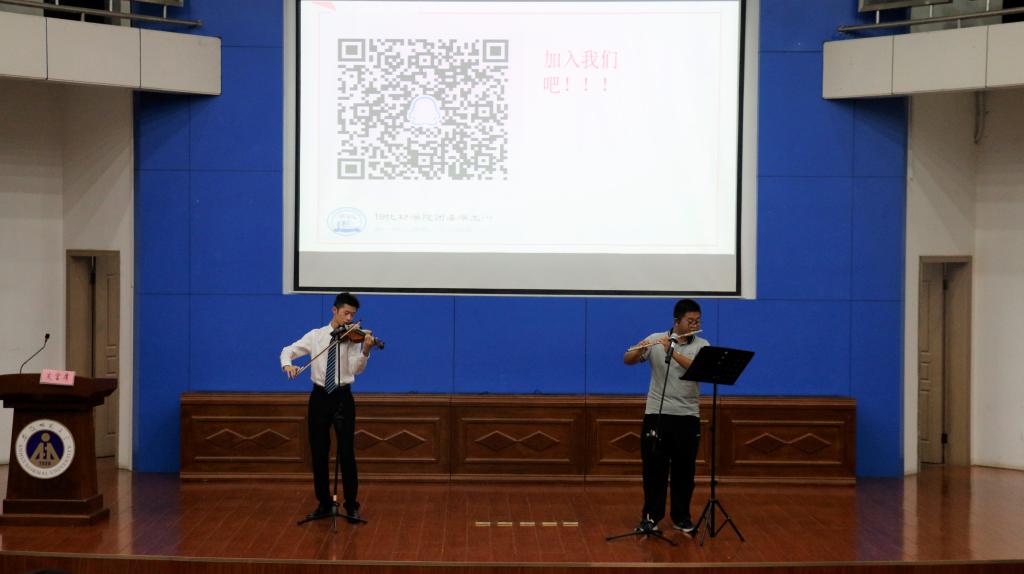 紧接着,团委学生会主席团、部长团、大艺团、体育团依次上台发言,分别从团委学生会各部门的特点、工作职能、特色活动、招新要求等方面向2019级新生进行了详细介绍。随后,长笛小提琴合奏《way back home》重磅上演,笛声空灵悠扬、小提琴婉转悠长,西洋乐器与东方音乐火花四溢,绘就一篇绝美华章,让现场的观众痴迷不已。一首《记得》让全场沦陷,潘岩、程艺青同学饱含深情,带领同学品尝了青春的苦涩。最后,美高梅4858线路登录环境保护协会会长戚明强、江淮科普学校分享人刘来瑶、唐莹莹、大学生就业促进与互助协会会长吴宇依次给新生带来了各组织的基本介绍和经验分享,本次新生见面会圆满结束。