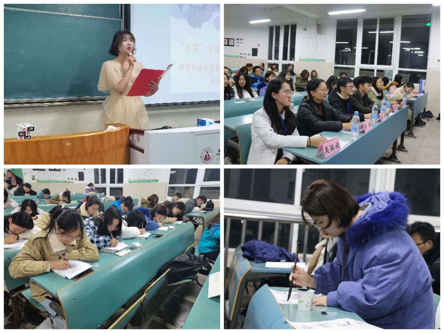 比赛过程中,现场评委秉持着公开公平公正的原则,根据参赛人员的书写效果、书写水平以及书写的潦草程度进行打分,最终确定了本次书法艺术比赛的获奖名单,并推选出优秀选手参加校级比赛。