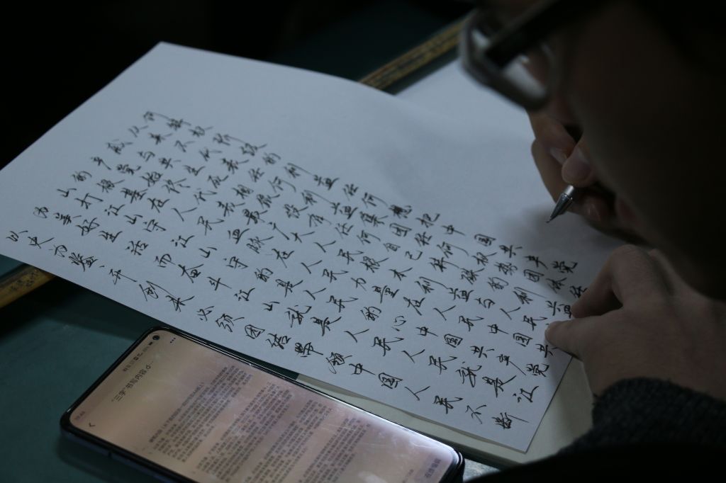 本网讯(美高梅4858线路登录 董春蕾)为庆祝中国共产党成立100周年,学习百年党史,感悟中国共产党人的精神谱系,强化师范生从教基本功。美高梅4858线路登录于11月19日晚在行知楼2010403教室组织开展了以“提笔感悟百年党史,挥毫赓续红色血脉”为主题的第32届“三字”书法艺术比赛。