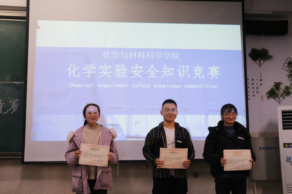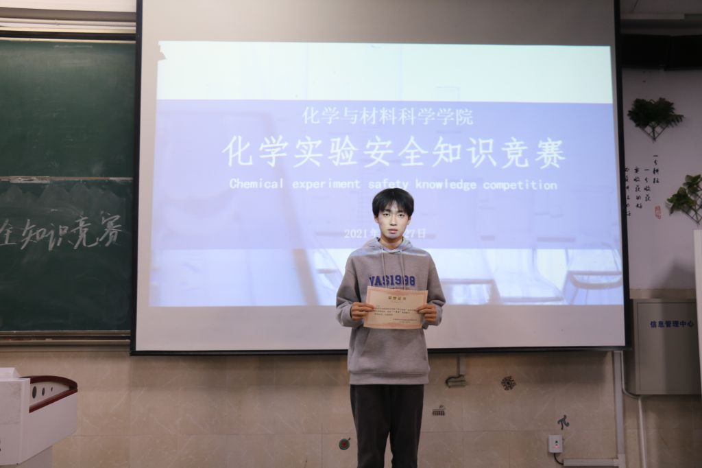 决赛则采用轮流答题和抢答的方式,参赛者需按照专业分为六支队伍相互比拼。比赛过程中,选手们冷静沉着,自信认真,充分运用自身所掌握的化学实验安全知识抢答,为了自己和团队的荣誉奋力一搏。现场选手积极踊跃答题,队伍上下团结一心认真作答的良好氛围充分体现了化材学子对专业知识认真严谨的钻研精神以及团结协作的集体观念。在激烈的角逐过后,2021级化学师范1班获得了第一名。决赛时,现场观众积极参与抢答,现场气氛活跃,答对的观众在比赛最后领取奖品。