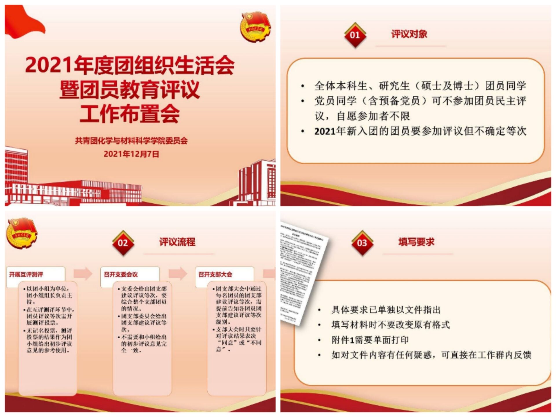 为做好各项准备工作,院团委开展线上团组织生活会暨团员教育评议工作布置会,分别从评议对象、评议流程、填写要求和材料提交四方面展开,积极为各班团支书予以解答存在的疑惑和难题。