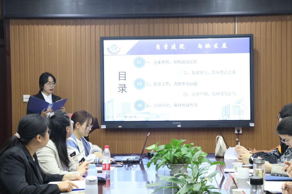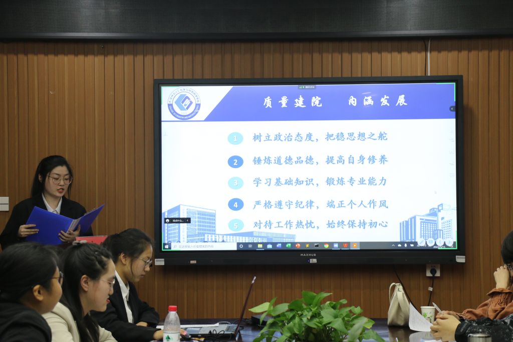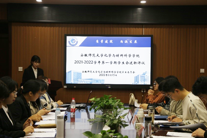 学院学生会主席团成员和各工作部门部长、副部长依次进行述职汇报。9位学生工作人员通过PPT展示和书面述职材料,全面总结了上一学期的工作重点,对个人在学生会组织中的发展情况、政治态度、道德品行、学习情况、工作成效、纪律作风等多方面进行阐述,同时总结学期工作,查找自身不足,提出改进自我的计划与措施。