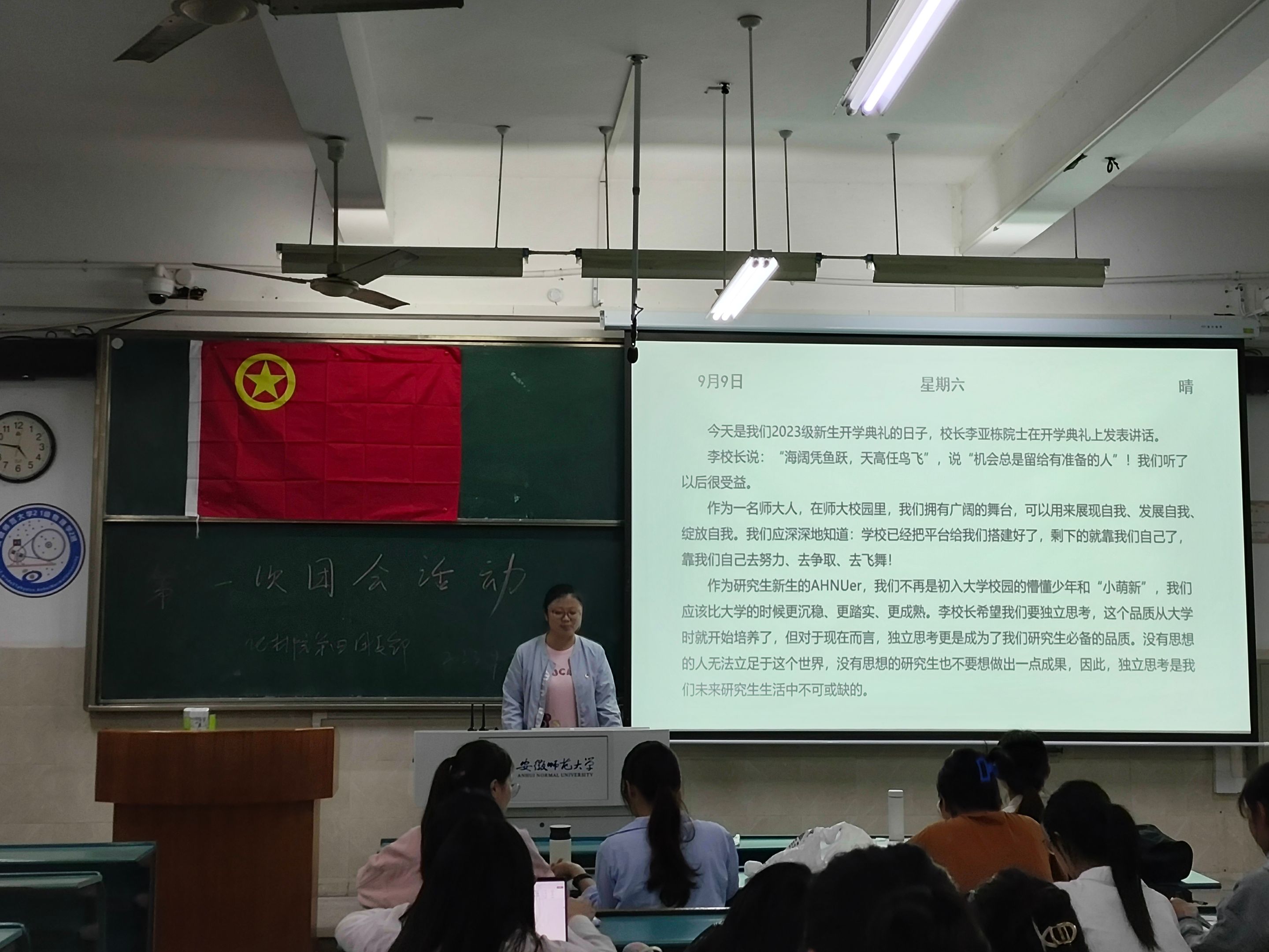 本网讯(美高梅4858线路登录 张薇)正值2023级新生入学教育之际,为加强学生对新生开学典礼进行思考,明确研究生学业规划以及对未来的人生规划,9月21日,美高梅4858线路登录以团支部为单位于行知楼1号楼206教室举办“海阔凭鱼跃,天高任鸟飞”主题教育活动。美高梅4858线路登录研究生新生代表、研究生辅导员张薇参加此次活动,活动由2023级研究生第4团支部书记张佳欣主持。