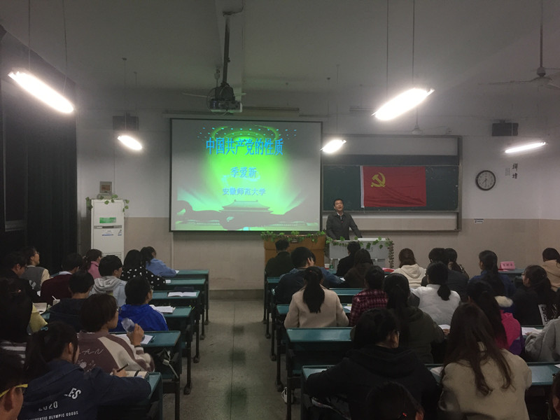 本网讯(党课班 王思源)11月17日晚,美高梅4858线路登录第23期入党积极分子培训班开班典礼在行知楼如期举行,校党委组织部部长季爱新,院党委书记、分党校校长汪俊武,美高梅4858线路登录教授吴华强,党课班班主任老师王国良、副班主任王雨兵出席本次开班典礼,典礼由王国良老师主持。 开班典礼在庄重雄伟的国歌声中开始,首先由王雨兵老师宣读培训班班委任命及班级管理制度,之后指导老师吴华强汇报了本学期党校工作安排,接着22期优秀学员邓传玉发言,强调了作为入党积极分子的身份意识,要坚定信念,加强理论学习的同时联系实际,做同学们的表率,在同学之中起到模范带头作用。随后23期学员代表郝艾婷做了关于党课学习的发言,她代表全体学员表明态度,要主动学习,自主学习,严守纪律,加强自我约束,时时刻刻以党员的标准要求自己。最后汪俊武老师讲话,塔肯定了学员的热情,对所有入党积极分子表达了深切的期望,赢得热烈掌声。 第23期入党积极分子培训班第一讲由校党委组织部部长季爱新老师主讲,季爱新部长从政党概念切入,让学员们先对中国共产党有了大致的认识,随后季部长从党的性质中的两个先锋队,一个领导核心,三个代表以及一个最终目标四个部分分别对党的性质进行细化的讲解,让学员们对党的性质的内涵有了充分,系统的了解,其中对党“顺民意,聚民力,谋民利”理论阐述结合实例具体分析,说明我党发生发展的历史必然性,让学员对党有了更加理性的认识,对党有了属于自己的思考。 本次培训使同学们看清了未来努力的方向,进一步了解了共产党员的责任和义务,让学员的受益匪浅也坚定了同学们积极向党组织靠拢并加入中国共产党的决心。