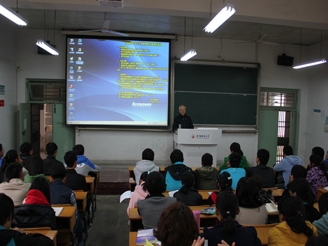 在面临着当今社会能源匮乏的压力下和资源利用不合理的背景中,宫老师很细致的与同学们分享了如何解决这个关系人类生存的大问题的想法。他从三个方面分别阐述了自己的观点:<1>常规能源日益枯竭。在这一问题下他向我们讲述了目前全球对常规不可再生能源的使用情况,及能源储量分析。<2>常规常规能源使用所带来的环境问题。传统矿物燃料在燃烧利用时释放大量的CO2,直接导致温室效应,间接导致南极冻土解冻,冻土下的甲烷大量释放,进一步加剧温室效应,使环境问题陷入恶性循环。<3>新能源的开发和利用难度较大。宫老师向我们讲述了解决能源问题的三个原则:推进能源革命改变能源结构;调节产业结构,降低不可再生能源的消耗速度;尽量减少能源使用过程中造成的能源问题。在具体分析中,宫老师向我们详细解说了大力开发利用太阳能、风能、谁能、氢能源、核能等方面遇到的问题及已经取得的成就。