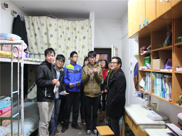 为丰富校园文化活动,创造美好生活空间,进一步增强新生同学之间的交流与友谊,营造良好的寝室文化氛围与和谐的人际关系。11月30日上午,美高梅4858线路登录学生之家委员会举办新生寝室互访活动,2014级新生辅导员程紫丹老师、学生之家活动部的全体成员、各新生班级生活委员及新生寝室代表参与了互访活动。 活动伊始,全体人员分为两个部分,男生由程紫丹老师带领访问女生寝室,女生则由学生之家副会长方松带领参观男生寝室。一进入女生寝室,同学们就热情地为参观的同学介绍其装扮风格和寝室特色。干净整洁的地面,整齐洁净的桌子,床下摆放整齐的鞋子,柜子上摆满的书本,使得寝室充满着浓浓的书香气息,很好的体现了学生寝室即家的宣传理念。男生寝室则显得简洁大方,寝室长详细讲解着他们的设计理念和室友间的日常相处趣事,引得观访同学们阵阵赞赏,程紫丹高度评价了各寝室的卫生和表现,他对大家说:“来这里不仅为了参观打分,更是相互学习彼此的生活态度和团结精神,更好的维护好寝室这个家!”