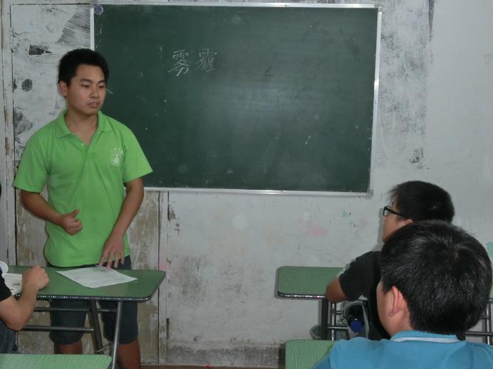 点燃未来希望,弘扬科学新风尚 为期一周的支教活动从7月1日上午正式开始,团队成员将充分结合自身的优势,传播知识,为社区居民解读生活中的化学,为社区学生解答学习中的困惑。同时为了为丰富社区学生的假期生活,带去知识和快乐,团队还开办了以“滴水情缘·牵系你我”、“雾霾知多少”等主题课程。同时团队还积极开展以“环保你我他”的环保宣传活动,提高居民环保意识,通过设立科普讲座、陈列科普宣传展板、建立科普咨询处等方式分别就“节约水资源、光盘行动、水污染、废旧电池的危害”等相关知识进行了科普宣传,此活动获得了社区居民的广泛好评与社区工作人员的大力支持。此外,团队利用社区资源对居民的环境保护意识进行调查,通过对回收的问卷进行科学的分析,结合社区实际情况给出意见与建议。