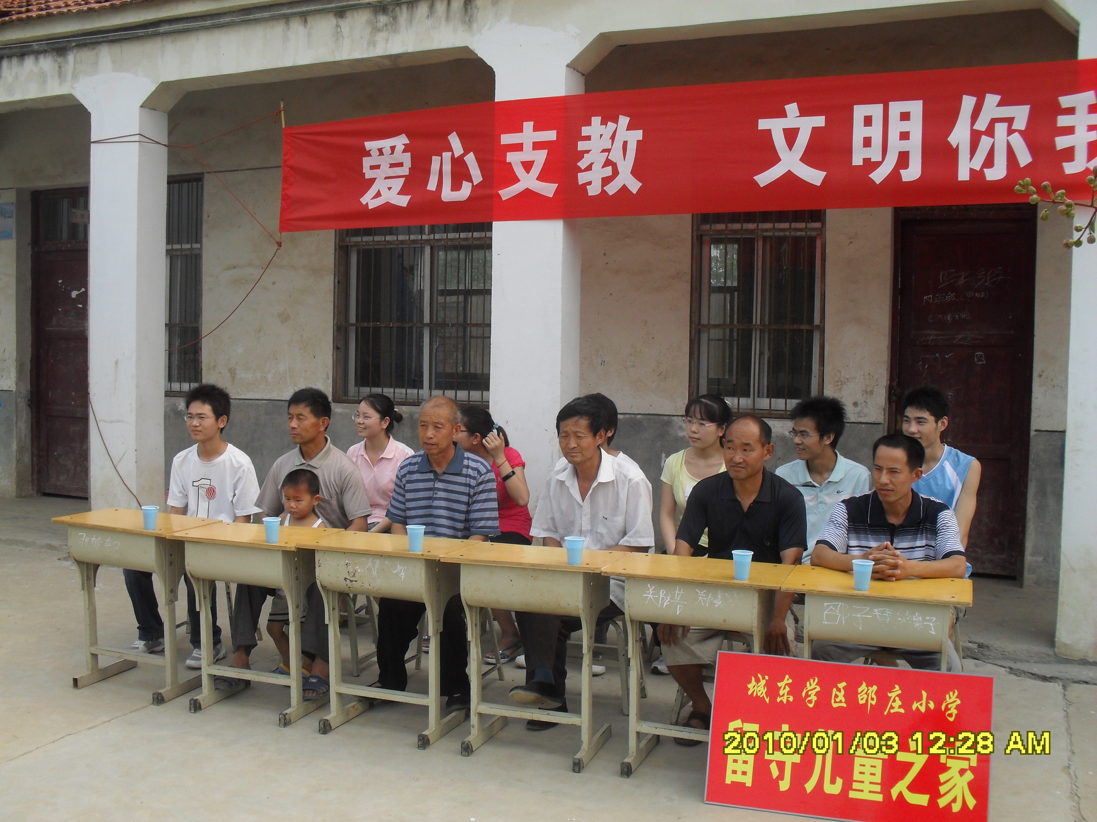 2010年7月5日,美高梅4858线路登录2009级化学3班暑期社会世界小分队本着“牵手阳光,关注留守儿童”的宗旨,奔赴亳州涡阳县。7月6日上午9:00,此次活动的启动仪式在支教地涡阳县城东区邵庄小学校园成功举行。