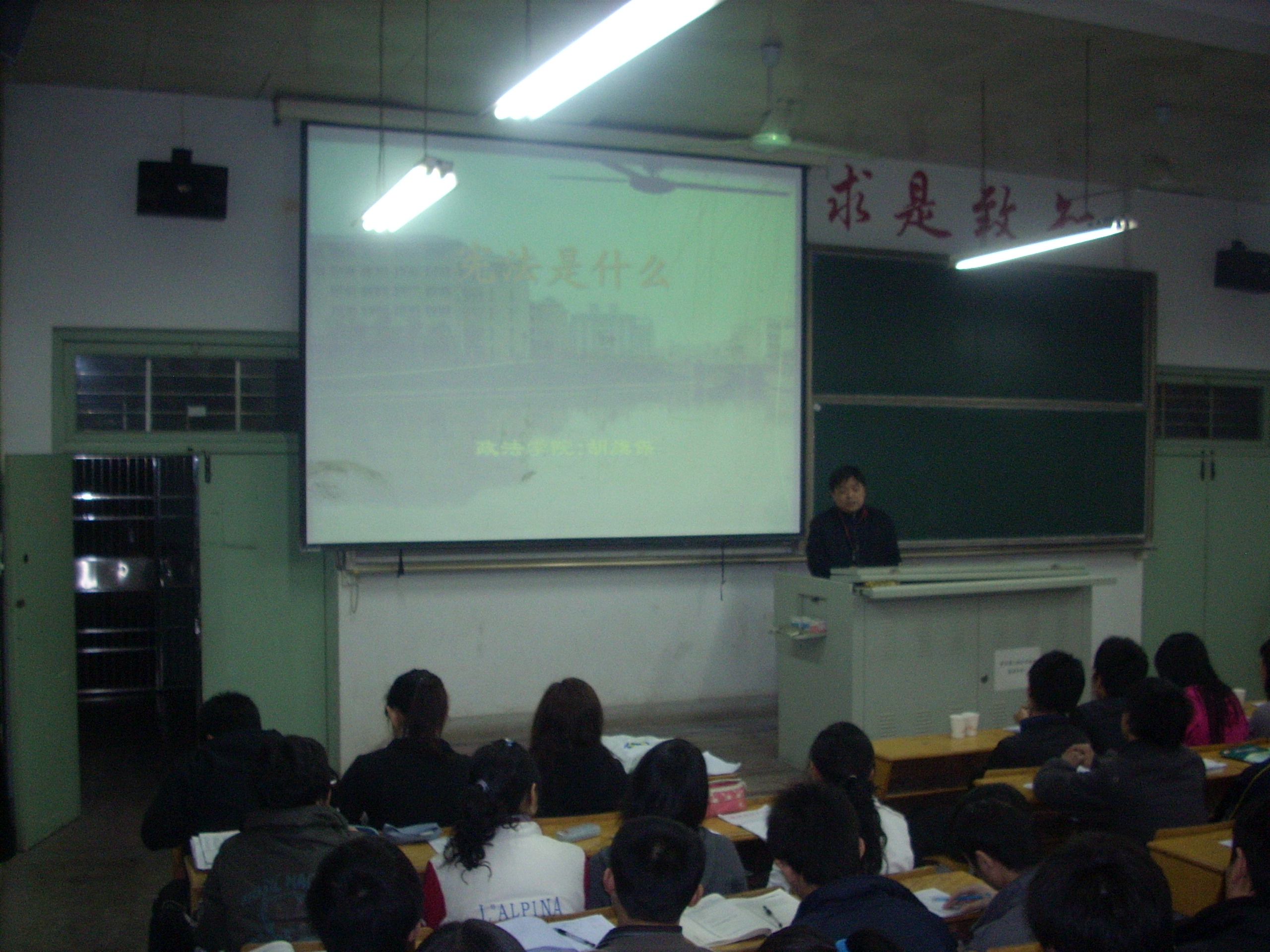 2009年3月29日晚上7点,美高梅4858线路登录在生化楼2044教室成功举办了一场精彩的宪法教育专题讲座。 此次讲座邀请到了我校政法学院宪法研究专家胡旗保老师,胡老师先给大家谈了“宪法是什么”,随后以“三少女遇车祸,同命不同价”等典型案例引出了宪法的重要性,最后自然地阐述了宪法的产生、结构及其不足之处,胡老师幽默诙谐的讲座深入浅出,不仅赢得了全场学生阵阵热烈的掌声,而且将现场的气氛推向了一波又一波的高潮。 讲座结束,许多同学都受益匪浅,纷纷觉得自己更进一步地深入了解了宪法的性质和宪法在现实生活中的重要之处。 (通讯员:刘晓伟)