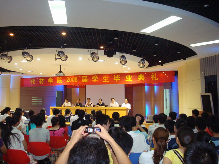 2008年6月30日晚,化材学院在赭山校区团委多功能厅隆重举行2008届本科生毕业典礼。学院党委书记季爱新、院长王绍武、副书记汪俊武、副院长朱昌青、魏先文、胡敏等院领导出席典礼。出席毕业典礼的还有教师代表杨高升老师、李世凤老师,毕业班辅导员张园园老师、桑艳老师和2004级本科班全体毕业生。典礼由美高梅4858线路登录党委副书记汪俊武主持。 毕业典礼在学院党委季爱新书记题为“特殊的2008年,特别的2008届”的致辞中开始。书记富有诗意的言辞带领着大家共同回顾了四年的点点滴滴,同学们深有感触,掌声不断。随后,院长王绍武教授发言,代表学院向学业有成、即将告别母校的08届本科毕业生表示祝贺,希望他们能够树立远大的理想,主动适应社会,爱岗敬业,踏实工作,要干一行爱一行,爱一行精一行,用自己的青春和热情,智慧和知识谱写自己奉献祖国、服务社会的人生之歌,并希望他们心系母校,常来常往。教师代表李世凤老师从一名普通教师的工作经历出发,对毕业生们提出了殷切的期望,希望他们青出于蓝而胜于蓝,脚踏实地的努力工作,实现自己的人生价值。 之后,2008届毕业生代表罗亚男同学发言,表示在以后的学习、工作、生活中将时刻谨记母校老师的教诲,以优异的工作业绩回报母校、回馈社会,并表达了对母校的依依不舍之情。汪书记最后发言,要求全体毕业生在学校的最后时刻要一如既往地遵守校规校纪,真正做到文明离校,为师弟师妹们做好榜样,对自己负责,对家长负责,对学校负责,对用人单位负责。最后,到场的领导和老师为毕业生颁发毕业证书和学位证书,与同学们亲切握手,并合影留念。 另外,学院二本学生毕业典礼已与6月29日成功举办。