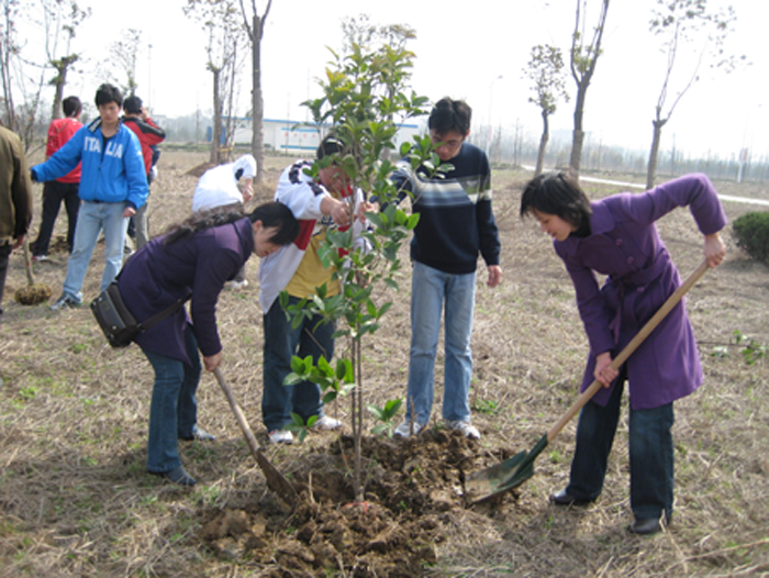 志愿寝室成员和志愿者们在组织者的带领下来到植树地点,有序地领取了树苗。并在绿化工人的指导下,播种了一棵棵象征着绿色、环保、希望的树苗。所有的树都是按照预定的位置种植,这正好组成了“0”和“8”的构型,喻意着08年奥运的到来,反过来,80也象征了安徽师范大学80年华诞的来临。这也是我们组织这次活动的最重要的目的——向师大80年校庆献礼。志愿寝室更是把自己种的树看成是室友们友谊的象征,同学们纷纷以在树上挂牌、拍照等方式来留下这段美好的记忆。另外,南校区社团联合会主席也带来了一部分同学参加我们的活动,在全校各兄弟学院同学的热情参与下,活动举办得非常成功。本次活动由环协、07级化教二大班和应化班共同主办,共种下一百多棵树苗,为校园绿化添上了绚丽的一笔!