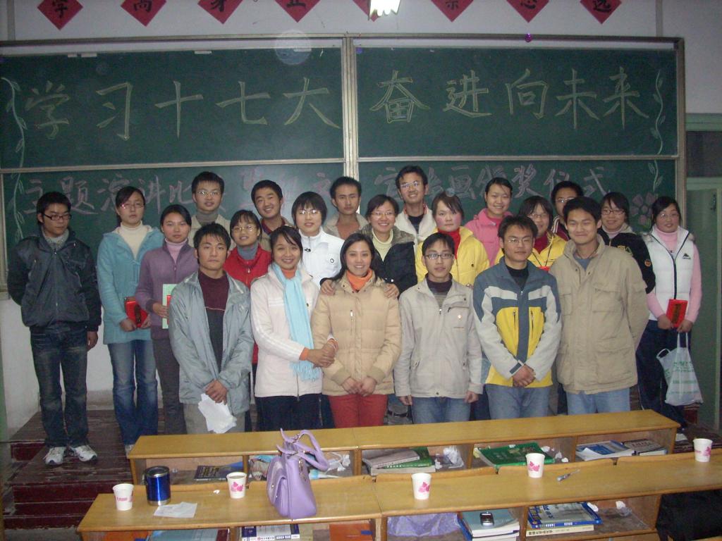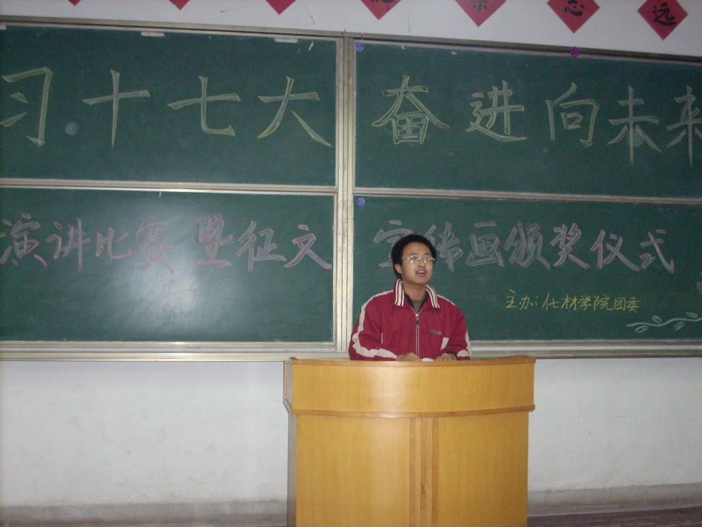 为了提高同学们的思想觉悟,将十七大的学习落到实处,12月3日下午5:00美高梅4858线路登录团委在生化楼2023教室成功举办了“学习十七大,奋进向未来”演讲比赛暨征文宣传画颁奖仪式,美高梅4858线路登录团委书记余妍霞老师及美高梅4858线路登录团委、学生会主要学生干部出席比赛并担任评委。