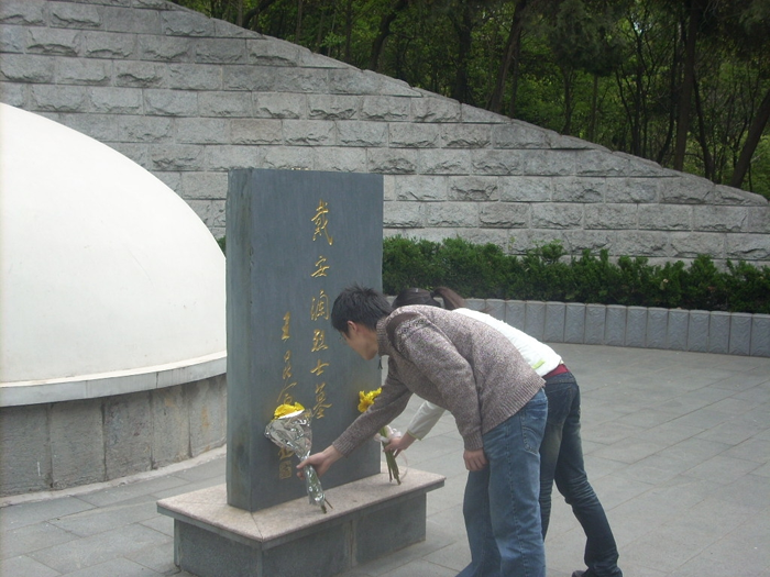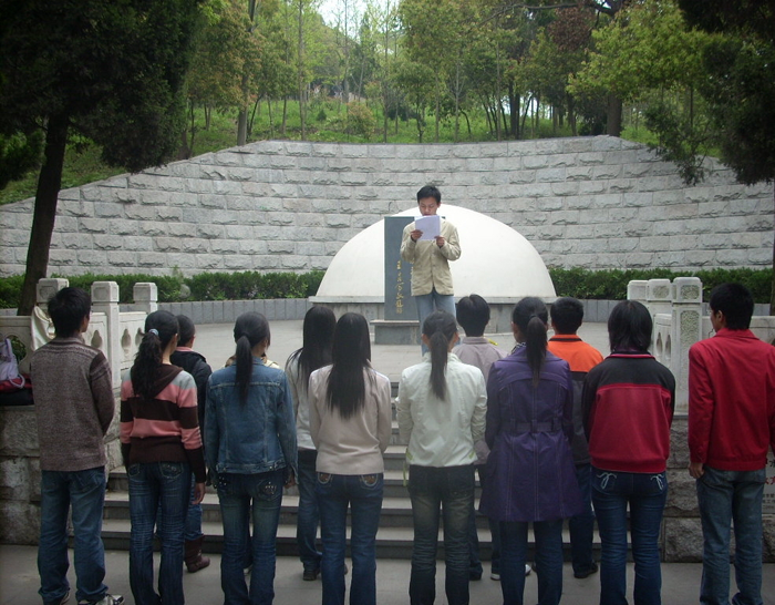 为了配合党校的学习,提高同学们的政治思想觉悟,加强同学们的爱国主义情感,美高梅4858线路登录第八期党校培训班第二学习小组于4月12日上午8:30准时在生化楼门口集合,在小组长的统一安排下,迈着整齐的步伐,怀着对革命先烈的无限崇敬,前往赭山戴安澜墓进行主题为“缅怀先烈,勿忘国耻”的党课实践活动。来到戴安澜墓碑前,同学们自觉地排好队,一种莫名的神圣感油然心头。小组长作了简要的发言,宣布本次活动的主题和活动的安排,之后由学生代表胡瑜同学向大家详细介绍了戴安澜将军的生平事迹,大家听得非常认真,思绪仿佛又回到了那战火纷飞的年代,革命先烈们为了国家的独立、人民的解放不惜抛头颅,洒热血,用生命和鲜血捍卫了中华民族的尊严,回顾那段屈辱的历史,同学们心中无限愤慨,落后就要挨打的真理在任何时代任何民族都不会过时,只有我们国家强大了,人民富裕了,我们的民族才能赢得尊严,赢得荣誉。随后由张敏和徐媛两位同学代表我们第二学习小组向戴安澜墓敬献了鲜花,同学们真诚地向将军鞠躬致敬,然后大家在墓碑前展开了“爱国主义”的讨论,有的同学谈到了当前的达赖事件,大家纷纷表示维护祖国的统一是每个炎黄之孙的义务和职责,那些蓄意破坏国家统一、人民团结的恶劣行径是不得人心的,势必会失败的。我们要继承革命先烈的遗愿,努力学习,追求上进,为祖国的繁荣昌盛贡献自己的力量。