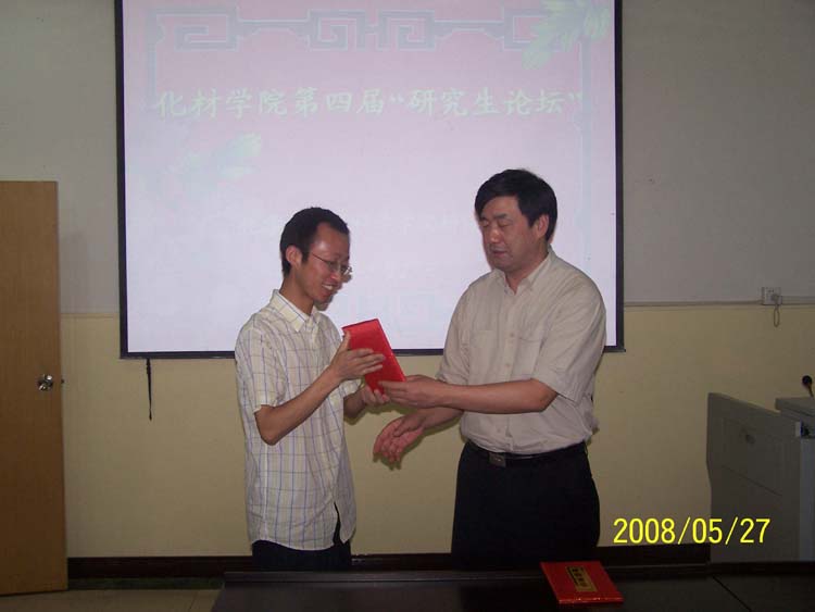 此次论坛由美高梅4858线路登录研究生会组织,研究生会主席付妍同学主持,参加论坛的同学有:陈大燕、程亮、黄新华、胡劲松、马有红、曲媛、吴俊、吴建伟、汪凤霞、杨森、张海燕、张雷、张利东和章大鹏共十四位同学,他们分别作了题为“SnO2纳米带的高温合成及光敏性质研究”、“Si纳米线上担载银纳米粒子催化降解罗丹明B”、“铟的配合物催化Cannizarro类型反应的研究”、“聚合物直接的CuI的合成和催化Huisgen环加成反应与CuI催化的多组分反应”、“纳米镍催化的芳香醛水相还原研究”、“调控芳环的C-H活化构筑伪鬼臼毒素的钯催化成环反应研究”、“酸催化的活泼亚甲基和酸的直接烷基化和新型喹啉酮衍生物的合成”、“双茂铁双异唑杂环化合物的合成和多组分反应合成呋喃衍生物的方法研究”、“Si纳米线上担载钯纳米粒子催化降解曙红Y”、“由ZnS粒子点缀的ZnO微米棒所组成的花状ZnS-ZnO的微结构的制备、表征及性质研究”、“形貌可控的金属碳酸盐的微波辐射法制备”、“NiHPO3·H2O纳米针束的制备及生长机理”、“钯催化的1.6-二烯异构化反应研究”“几种芳香族化合物与DNA相互作用及诱导DNA损伤的电化学研究”的学术汇报。十四位同学的学术汇报紧跟前沿,精彩纷呈,受到在场学生的一致好评。