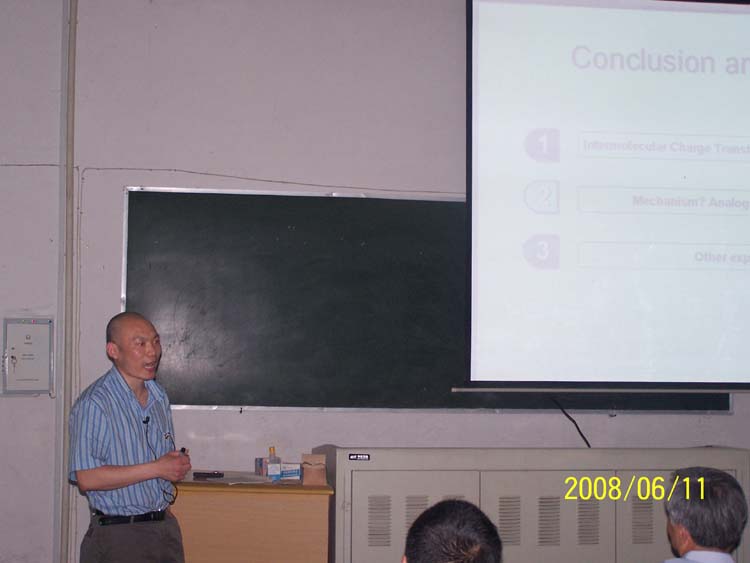 任小明教授为美高梅4858线路登录师生作了题为“∏-∏电子堆积效应对分子的影响”的学术报告,报告中任小明教授介绍了如何采用各种分析手段,寻找有关∏-∏电子堆积效应对分子的影响证据,为研究分子材料的性能提出了新的思路。整个报告过程中,任小明教授以其风趣幽默的语言将他在这一研究方向中所做的工作以及所取得的成果逐一叙述出来,报告深入浅出,受到在场师生的一致好评。