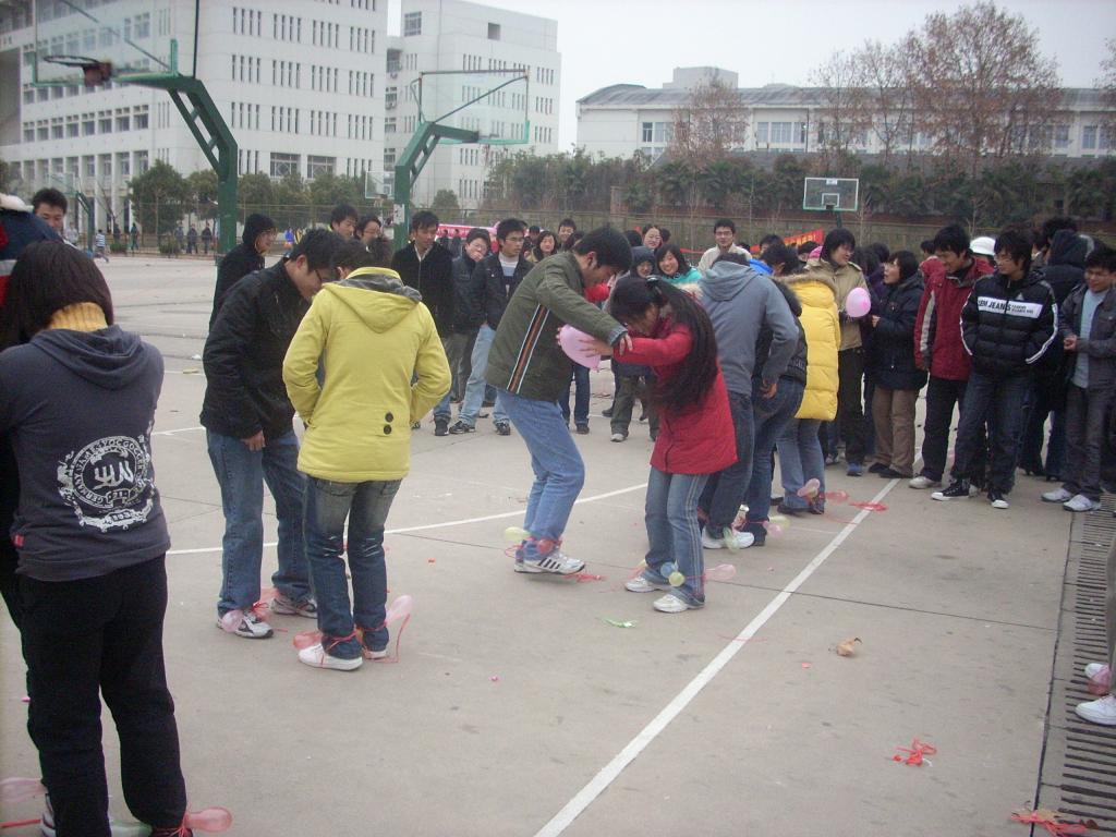 第二部分是12月21日下午在赭山校区篮球场和学生食堂举行的班级嘉年华活动。场边气球迎风飘扬,场上同学兴高采烈,一派节日的喜庆气氛。大家以班级为单位自行设计活动内容,有唱歌、跳绳、做游戏、包饺子等形式多样的活动,大家可以根据各自的兴趣参加活动。现场气氛非常热烈,师生踊跃参加活动,欢声笑语不绝于耳。尤其是材化一班的活动尤为吸引人,使得许多路过的同学不禁驻足观看。学院党委季爱新书记、魏先文院长、汪俊武副书记、08级部分任课教师以及辅导员和班主任老师都来到现场感受浓浓的新年氛围,与同学们一起分享新年的快乐。(通讯员:关元成 江婷婷 檀梅 杨青文)