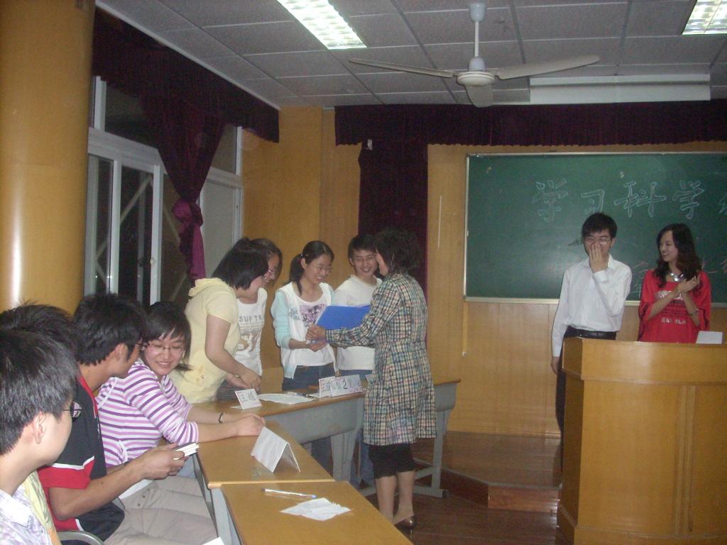 2009年5月13日晚,美高梅4858线路登录06和07级学生党支部在模拟法庭举行了学习实践科学发展观知识竞赛。06级学生党支部书记何月珍老师出席了活动。