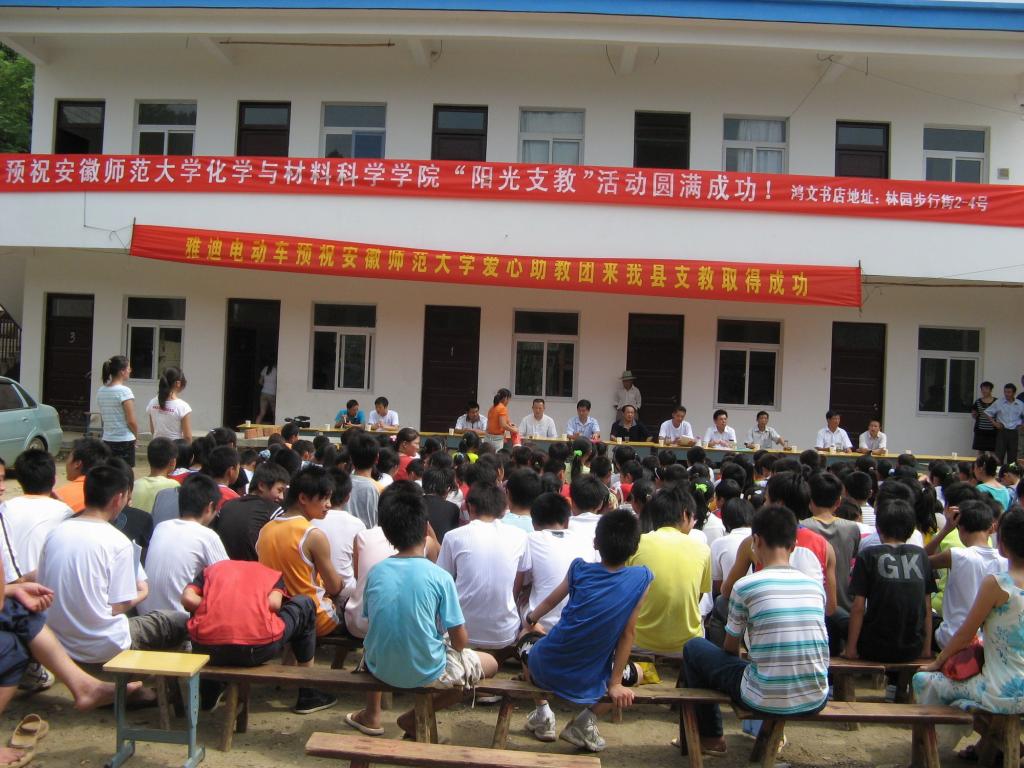 2009年7月6日上午9:00,陈汉乡朱湾村朱湾小学内气氛热烈,美高梅4858线路登录“阳光义教学校”宿松分组在此举行了隆重的开学典礼。宿松县教育局局长,陈汉乡副乡长及其他代表,朱湾村村支书,洪文书店负责人,朱湾小学代表老师以及全体“阳光支教学校”的同学和家长参加了此次开学典礼。典礼由朱湾小学校长主持。