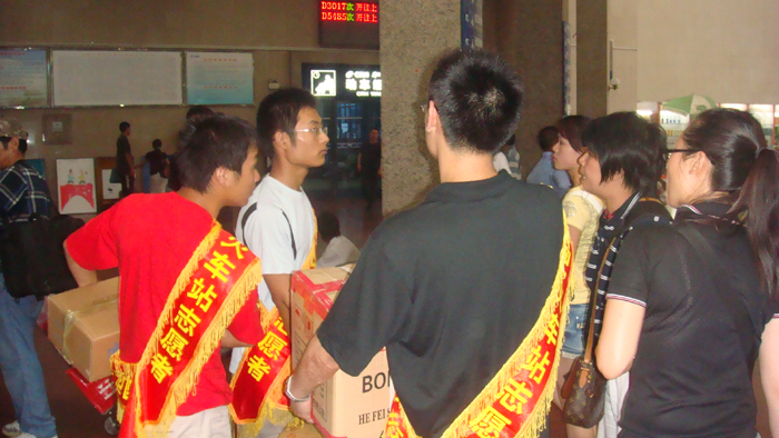 美高梅4858线路登录合肥组暑期实践活动于7月26日在合肥火车站展开,实践队16名组员以“关爱社会,共建和谐”为主题,冒着盛夏酷暑来到合肥火车站重点开展维持秩序,携老扶幼,劝止不文明行为等等实践活动。在为期10天的实践过程中,同学们认真负责的态度、不拍苦不怕累的精神以及全心全意做好服务的行为不仅受到车站旅客的广泛赞扬,还受到车站工作人员的一致好评。《安徽日报》、《安徽商报》、《安徽市场报》等媒体对活动给予了专题报道。