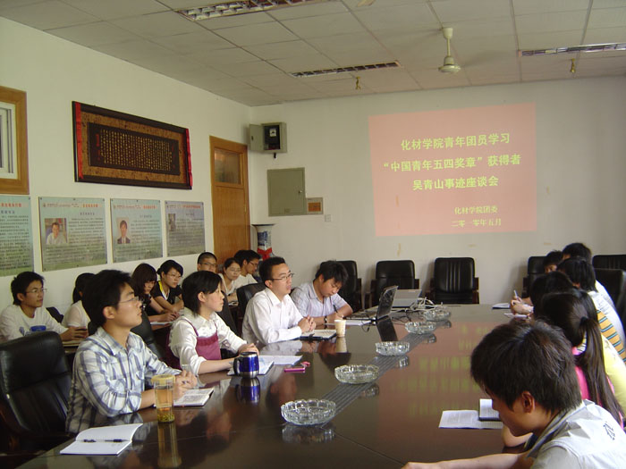 5月26日下午,美高梅4858线路登录在院会议室举行了学习“中国青年五四奖章”获得者吴青山先进事迹座谈会。吴青山应邀出席了会议。参加会议的还有院团委书记余妍霞老师和院团委、学生会以及各班级主要学生干部。余妍霞老师主持了会议。