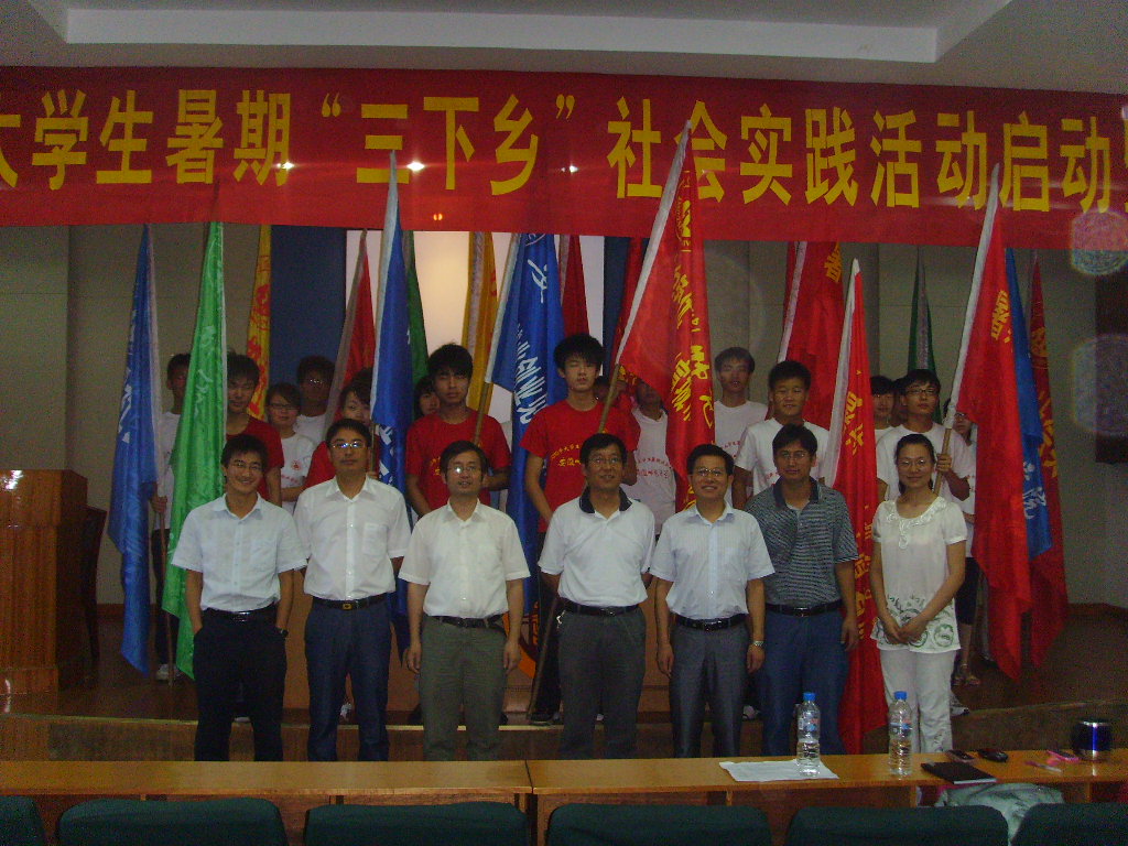 2010年7月5日上午,美高梅4858线路登录2010年暑期社会实践活动启动仪式在赭山校区图书馆报告厅隆重举行。校团委副书记台启权,美高梅4858线路登录党委书记季爱新、院长魏先文、党委副书记汪俊武、副院长商永嘉出席仪式。部分重点团队指导老师代表及志愿者代表也参加了仪式。仪式由院团委副书记朱琳主持。