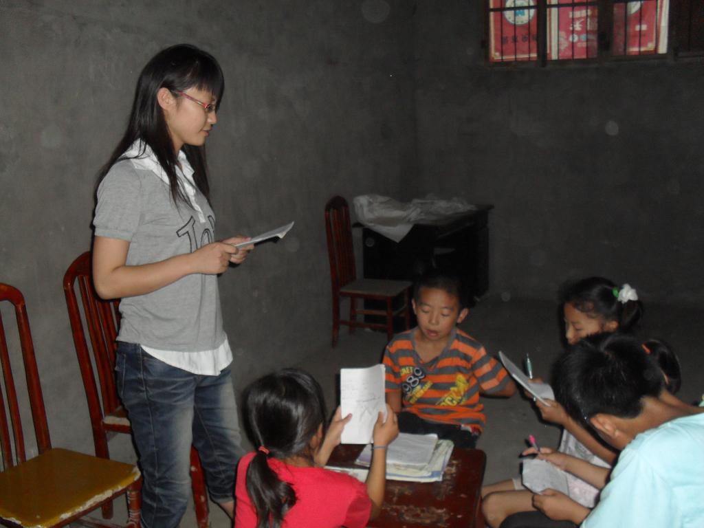 在活动的过程中,孩子们表现的非常积极,每天在家中早早的为老师的到来做好准备,我们的志愿者认真负责,耐心地为孩子们讲解,师生情谊日益加深。此外,随着支教活动的进行,不断有新的小朋友参与进来,这给志愿者们以极大的肯定和鼓舞,给予他们不畏艰辛、勇敢走下去的力量。(09化学3班 谢文文)