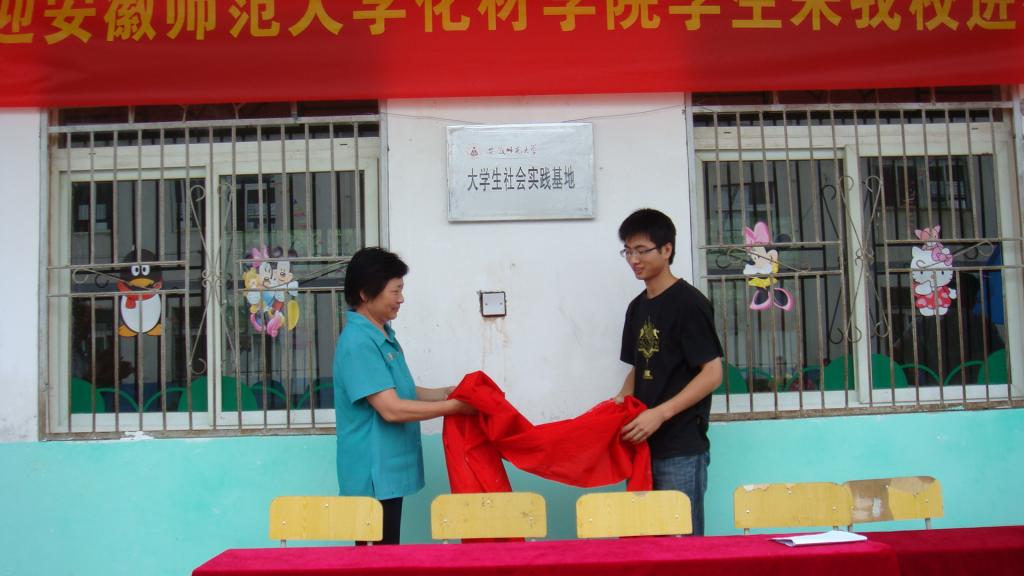 出席仪式的各位领导先后进行发言,他们对志愿者们的到来表示欢迎,对实践活动的举办表示了衷心的祝愿并寄以厚望,对志愿者们的奉献给予了高度的评价,并希望能与安徽师范大学保持长期合作关系。随后,志愿者代表李慧芳同学发言,向支持本次活动的领导和老师们表达了谢意,并表示一定会尽己所能完成任务,不辜负老师、家长及孩子们的期望。最后,在隆隆的鞭炮声中,党委副书记胡文峰和志愿者代表共同为此次社会实践活动揭牌,并宣布活动正式开始。