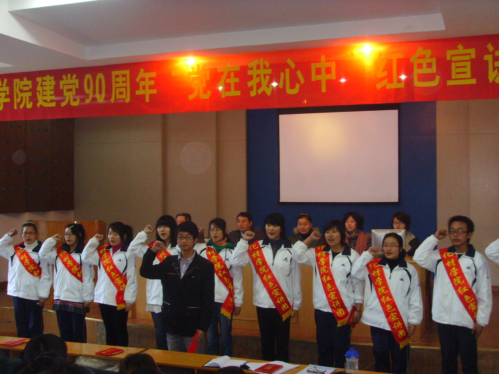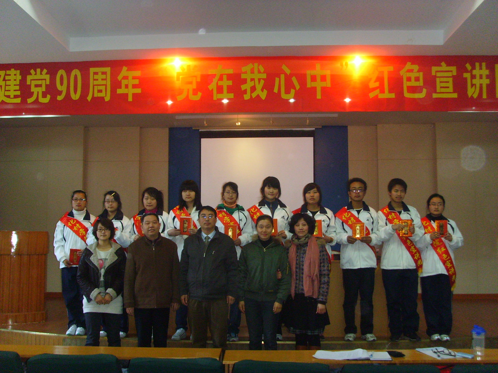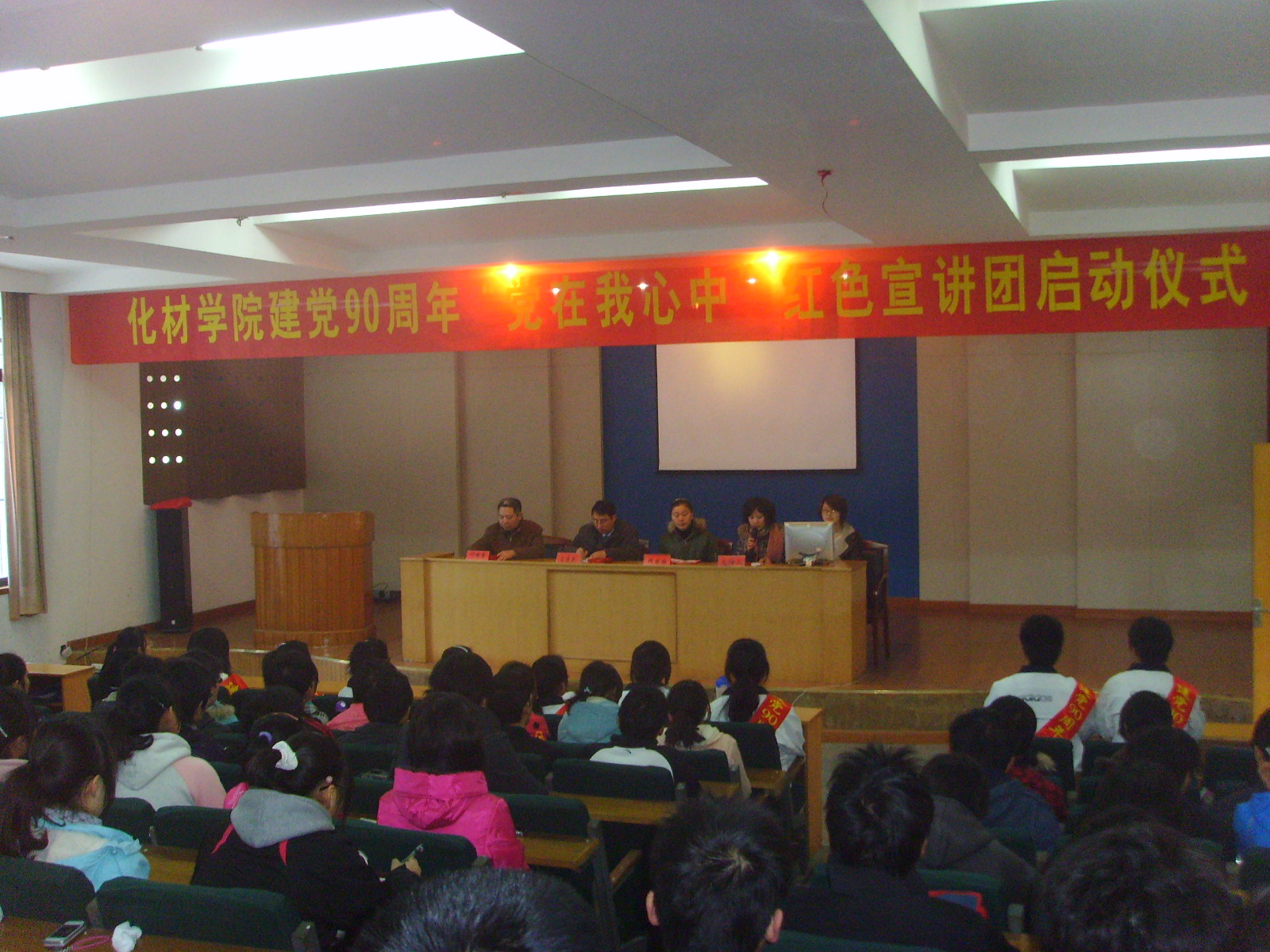 2011年3月25日上午,美高梅4858线路登录10级化学专业同学在图书馆一楼报告厅举行了建党90周年“党在我心中”红色宣讲团活动启动仪式。院党委副书记汪俊武、班主任叶世勇老师、院团委副书记张园园老师出席了启动仪式。仪式由院团委书记余妍霞老师主持。