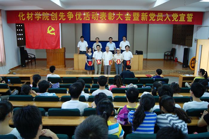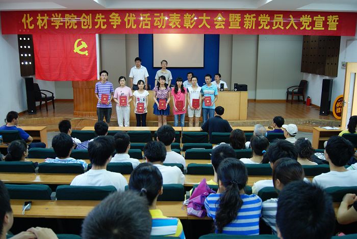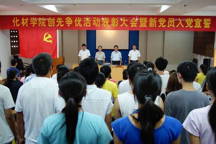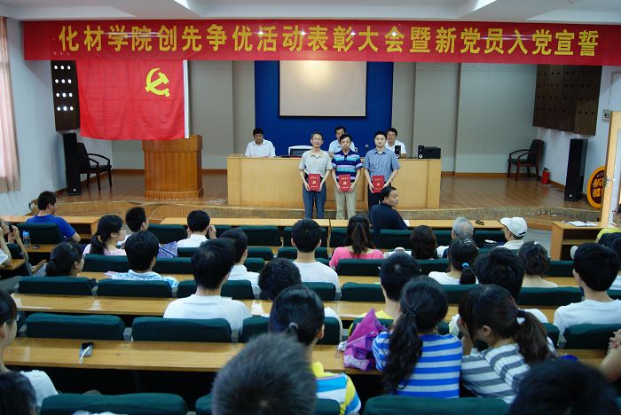 为庆祝中国共产党成立90周年,进一步推进创先争优活动的深入开展,美高梅4858线路登录党委于2011年6月29日上午在赭山校区图书馆报告厅召开创先争优活动表彰大会暨新党员入党宣誓、老党员重温入党誓词大会,院领导、全体新党员和部分老党员代表参加了会议。会议由学院党委副书记汪俊武主持。