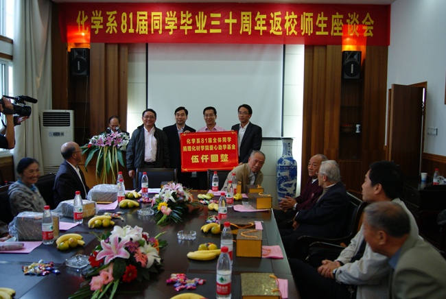 会上,化学系77级全体同学向美高梅4858线路登录“爱心助学基金”捐款5000元,资助困难学生完成学业,并倡议返校聚会校友都以捐款方式表达对学院、对学校的热爱,表达对困难学生的关心,使“爱心助学基金”不断扩大。季爱新书记和朱昌青副院长代表学院接受捐赠,并向校友表示衷心的感谢,保证送到最需要的学生手中,在学院网页上公布使用情况,接受校友监督。