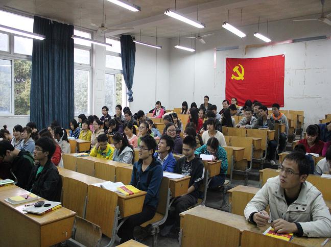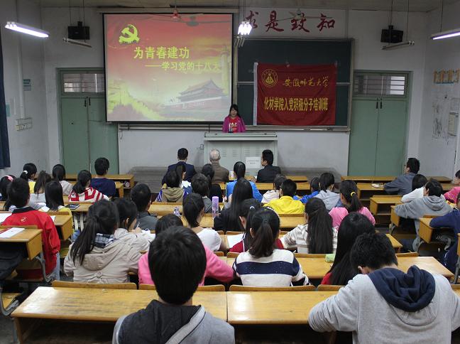 交流会在激昂的国歌声中拉开帷幕,分党校第四小组组长宋芳首先为大家展开介绍十八大的历史背景、大会的主题和报告的主要内容。接着全体学员共同观看了胡锦涛总书记在十八大上的报告,整场报告鼓舞人心,学员们感受了十七大以来在党的领导下国家发展取得辉煌成就以及当代青年所应肩负的历史责任。学员代表2013级材化专业的乔士金、2012级应化专业的吴玲玲分别为大家讲述他们对于视频中提出的新思想、新观点、新论断的所感所想所悟,并联系实际表示要努力学好专业知识、练就过硬本领,为国家的繁荣昌盛奉献青春。最后宫世国为在场的学员提炼报告的主要内容,并要求所有学员课下认真研读报告全文,领会大会的精神内涵,他强调十八大是中国共产党团结带领全国各族人民,在世界发展的潮流中、在中华民族伟大复兴的征程中对历史的高度总结回顾和对未来的美好展望与规划。