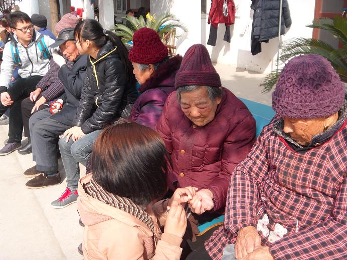 在没到达敬老院之前,志愿者们分外紧张,原因是怕有交流障碍、扰乱老人们的清净等等,但当到达敬老院,老人们表示欢迎的时候,志愿者们的心石散了。随后,在老年公寓负责人的指导下,志愿者们分成了两组。一组负责与老人聊天,倾听老人们的心声:有一位老人诉说了最近的生活状况,说自己不想在外的儿女操心,自己能够照顾自己;但当听到了老人的儿女无暇照顾老人而被迫住进敬老院时,在场的志愿者们深感痛心,同时也坚定了自己做志愿服务的决心!另一组负责照顾生活不便的老人,有为老人们表演节目的、也有帮助修剪指甲的等等。最后,临近分别,老人都纷纷要求合影,表示不舍。当有一位老爷爷亲切地说“我又多了一群乖孙子,我要把照片洗下来和我的亲孙子的照片放在一起”。那一刻,敬老院里不知闪烁着多少感动的泪花。