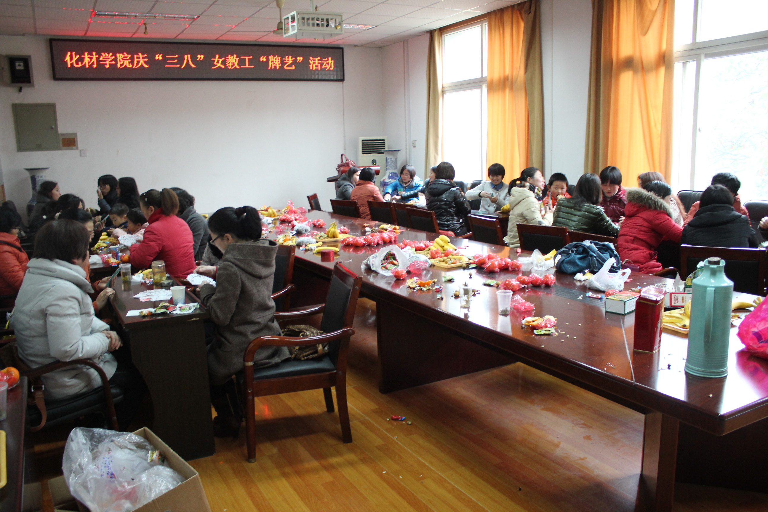 3月8日下午,美高梅4858线路登录会议室内喜气洋洋,美高梅4858线路登录“三八”女教工“牌艺活动”在这里如期举行。此次“三八”活动备受院领导的关注,本着校工会“喜庆、节俭”的原则要求,经前期广泛进行方案征集后,最终才确定了此次“三八”活动的主题,即“牌艺活动”。 此次“牌艺活动”共有50名女教工自由组队参与,经过两轮比赛共产生一等奖12名、二等奖12名和三等奖26名。参赛选手都坚持“友谊第一、比赛第二”的奥运精神,所以整个牌艺活动现场气氛热闹而不失祥和、竞争激烈而富有关爱。