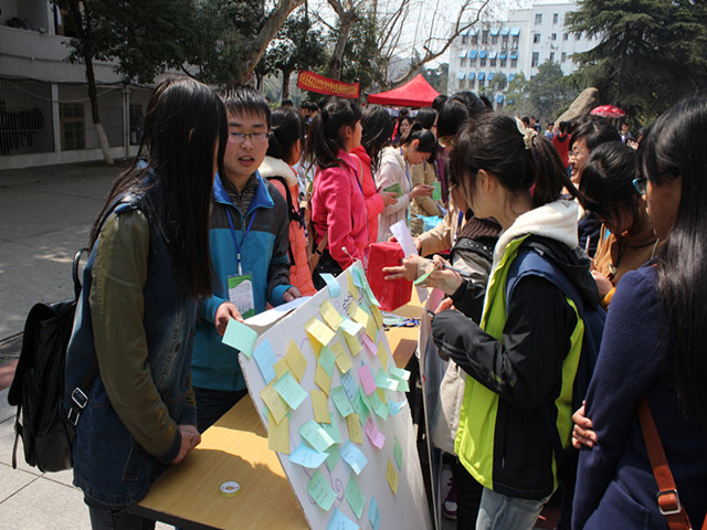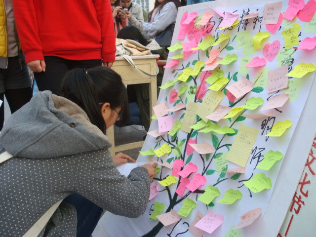 立足校园,宣传世界水日。连日来,志愿者通过摆展台、进宿舍等方式进行水环保宣传,倡导大家节约用水,养成不浪费水资源的好习惯。在宣传过程中,志愿者也积极与同学们互动,向大家征集节水标语,此举得到了同学们的积极回应,大家集思广益,一条条感人的标语应运而生:“惜水、爱水、节水,从我做起”、“一滴清水,一片绿地,一个地球”、“水是生命之源泉、城市之命脉”、“国之栋梁不可无,生命之水不可枯”。对于现场直接写标语、贴标语的热心同学还有一次抽奖机会,幸运者可获得精美小礼品,活动现场热闹非凡。