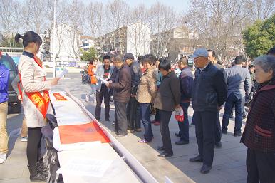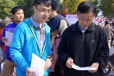 为了使更多的人感受到生活中化学的奇妙,一部分志愿者手持印有生活化学知识的宣传单向群众发放,向更多的人介绍生活中的化学小知识。对一些群众的困惑不理解的问题,志愿者都耐心的进行了解答。有的爷爷奶奶不认识字,志愿者们就慢慢的读给他们听,这样的悉心行为受到了很多人的赞许。随着影响的不断扩大,围观的群众越来越多,大家都表示这样有意义的志愿活动以后要经常举办,这样才能惠及更多民众。