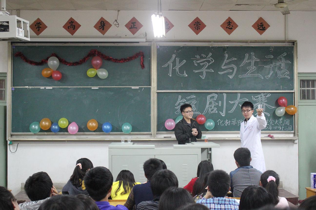 化学点亮生活,科技放飞梦想。4月12日晚,由院团委学生会大艺团主办的第二届化学短剧大赛决赛在生化楼2024教室举行,2013级辅导员陈露,学生干部贺莹、王琪、刘志强、陈姣姣参加活动并担任评委,百余名一二年级学生观摩了比赛。
