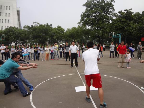 比赛开始前,史书记为同学们做了赛前动员讲话,并宣布活动开始。有机专业、无机专业、物化专业等研究生组成的八支参赛队伍参加了拔河、定点投篮、仙人指路、夹球跳、四人五足和坐地起身六个项目的角逐。在首先进行的拔河比赛中,各队队员团结协作、众志成城,各队之间比拼激烈,为比赛拉开了完美的序幕。操场上,不时响起阵阵呼声、掌声,同学们为队员们的精彩瞬间而喝彩,又因各种妙趣横生的场面而乐成一片。