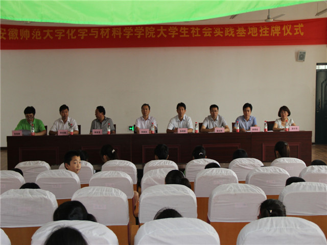 随后,在校会议室举行安师大美高梅4858线路登录与新集中心小学共建大学生暑期社会实践基地授牌仪式。五河县教育局局长孙家忠,新集中心小学校长朱世龙、本部校长蒋于芳,学院党委副书记张师帅,团委副书记赵全胜,袁青兵以五十余名大小环保志愿者出席了授牌仪式。仪式上,蒋于芳首先表达了环保宣教志愿者的感谢,她充分肯定了美高梅4858线路登录志愿服务团队的各项实践活动,希望暑期社会实践基地越办越好。随后,实践团队代表谢威同学汇报了参加社会实践的收获与感想,并对五河县教育局和实践学校的领导所给予的帮助表示感谢;小学生代表杨梦茹在发言中,回顾了几天来跟大学生哥哥姐姐们的学习与生活老师并畅谈了自己对环保的独特见解;在蒋于芳与袁青兵共同签订《大学生社会实践基地建设协议书》、赵全胜向新集中心小学校长朱世龙赠牌后,张师帅发表致辞,他首先对五河县教育局及新集中心小学各位领导对活动的支持和关心表示感谢,他指出建设生态文明,要从环保教育入手,加强孩子的环保教育是提高全民族环保意识的基础工作,他表示学院将一如既往地指导和支持大学生社会实践团队开展环保实践活动。最后,孙家忠在发言中对实践队员的表现给予了充分的肯定,他鼓励实践队员要发扬不怕苦、不怕累的精神,要勇于创新、大胆实践,敢为天下先。