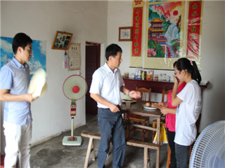 回访过程中,领导老师冒着烈日酷暑,克服乡村路况不佳、道路不熟等困难,深入到每一户受访的学生家中,与学生家长亲切交谈,详细了解学生家庭经济状况和实际困难,并向他们宣传党和国家、学校及社会爱心人士对学生的各项资助政策,解答家长对于相关政策的疑惑,同时,征询他们对学生资助、管理工作的意见和建议。院领导还代表学院分别向每位经济困难的学生家庭送上慰问金,鼓励家长一定要坚定生活的信心,充分合理利用国家和学校的资助政策,克服困难,度过难关;并要求受访学生要奋发自强、立志成才、刻苦学习,以优异的表现来回报父母的养育之恩、回报国家、回报社会。