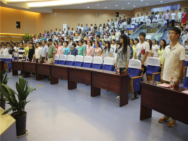 9月14日晚,美高梅4858线路登录2014级本科新生开学典礼在赭山校区科技礼堂举行。院领导史铁杰、朱昌青、胡敏、高峰,各系主任,教师代表,院团委老师,新生辅导员及全体本科新生参加了典礼。典礼由院党委书记史铁杰主持。