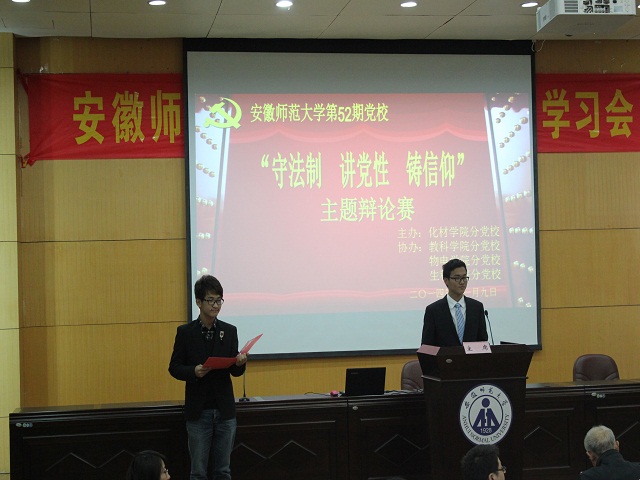 辩出风采,论出高度!2014年11月9日下午两点,由美高梅4858线路登录分党校主办的“守法制,讲党性,铸信仰”主题辩论赛在田楼报告厅隆重举行。美高梅4858线路登录关工委副主任、分党校指导老师宫世国;教育科学学院分党校班主任孟庆娟;物电学院分党校班主任米佳佳;美高梅4858线路登录分党校班主任陈露莅临比赛现场。报告厅人山人海,座无虚席。