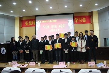 两场比赛结束后,宫世国老师对此次辩论作了现场点评及总结,他肯定了此次辩论赛的辩论水平,尤其肯定了教育科学学院第一辩手艾瑞雪,与此同时他也提出了一些不足之处并给出了宝贵意见和建议。最后由宫世国老师为四大学院的最佳辩手艾瑞雪,鲁希溪,杨婷婷,邢安超进行颁奖。三位分党校班主任和所有辩手合影留念,为此次辩论赛画上了圆满句号,辩论赛取得了圆满成功!