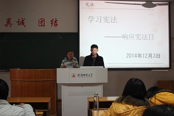 12月3日下午,美高梅4858线路登录团委学生会学习部在赭山校区教学楼1409教室举行宪法知识学习大会。团委学生会全体成员、各年级的学生代表参加了本次学习大会。会上,学生会副主席肖垚向同学们详细讲解了宪法的产生背景,宪法的正式确立和宪法的内容。紧接着同学们积极发言,争先上台演讲,互相交流自己对宪法的感想。学习会上还进行了宪法小知识竞答,通过竞答提问,进一步加深了同学们对宪法的了解,让同学们明白了宪法对自身成长成才的意义。