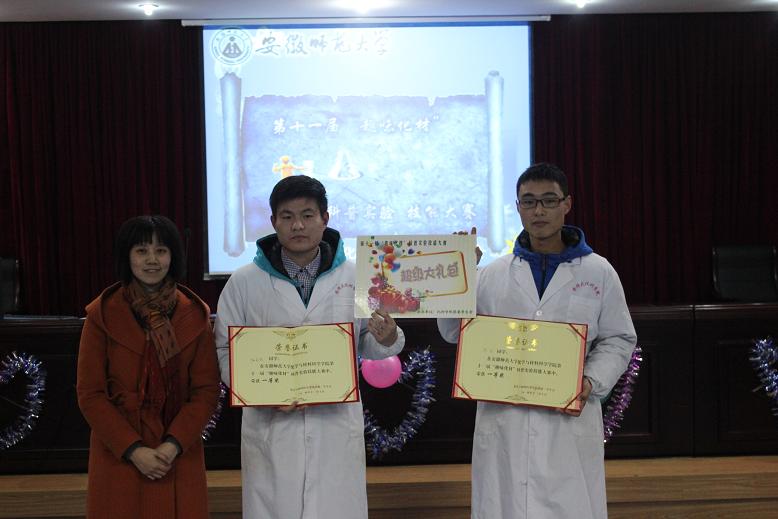 据悉,“趣味化材”科普实验技能大赛于2014年11月被认定为校首届本科生素质拓展精品项目。大赛以培养大学生的实验技能为目标,寓学于乐,凸显专业特色,提升当代大学生的化学素养,激发学习化学的强烈热情。该项目已连续成功开展了10次,近三年年均600名学生参与,尤其是与芜湖教育电视台合作,开设“科普360实验站”,既为青年大学生提供自我展示平台的同时,又丰富了学生的课余活动,更体现化学实验的独特魅力。