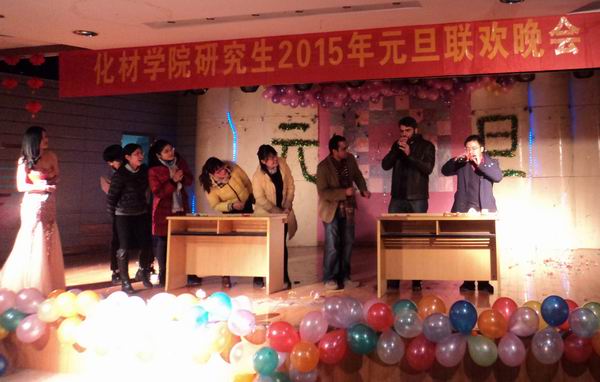 在这个欢乐的晚上,同学们整装待发,以最诚挚的姿态迎接2015年新年的到来!